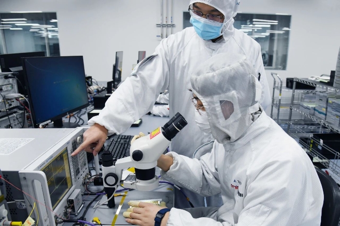 单只组件500余只芯片,2000余个元器件,12000余根键合丝!这是一款复杂多功能T/R组件,产品频率高、通道多、指标一致性要求严,装配难度大,调测难度更大,用户需要长期快节奏滚动交付,是个艰巨的挑战!产业基础研究院先进集成研究所多部门通力合作组建产品攻关团队,充分发挥敢打硬仗、能打胜仗的精神,历经近6个月持续奋战,累计交付数万余通道,打赢一场漂亮的交付战。